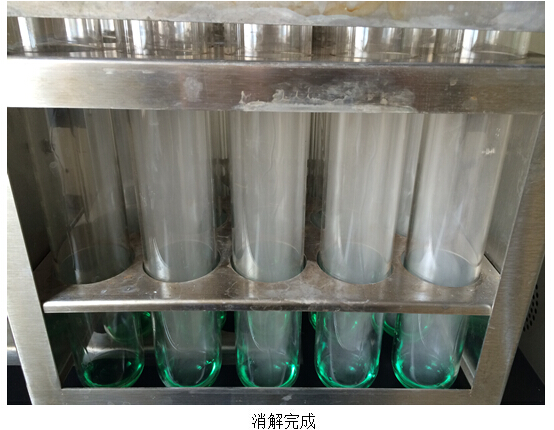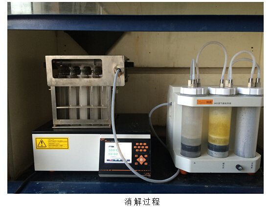 精確稱取0.5g左右樣品,用無(wú)屑稱量紙包好,一并投入消化管中,加入3.0g硫酸鉀和0.2g硫酸銅催化劑,8ml濃硫酸。并做空白實(shí)驗(yàn)。
