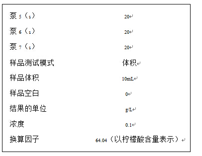 (1)這里結(jié)果以檸檬酸表示(M =192.13g /mol,z = 3)。如果改變結(jié)果的表示方法,需要改變適當(dāng)?shù)膿Q算因子。例如,蘋果酸g/L(M =134.09g/mol,z= 2),有時(shí)也用于表達(dá)的果汁的酸度,其在本程序中的換算因子為 67.05。