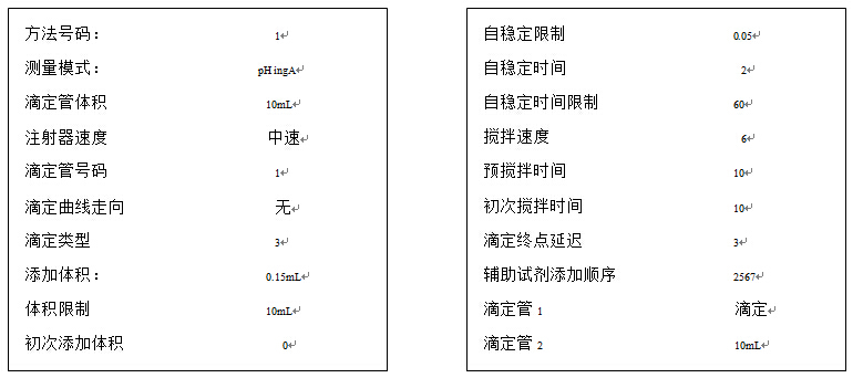 2、 參數(shù)的設(shè)定。通過“等當(dāng)點(diǎn)”設(shè)定方法參數(shù),移液泵以及滴定管的參數(shù),在本實(shí)驗(yàn)中,可將2號(hào)滴定管設(shè)定為自動(dòng)加樣滴定管,加樣品體積為10mL。參數(shù)設(shè)定完后保存方法。