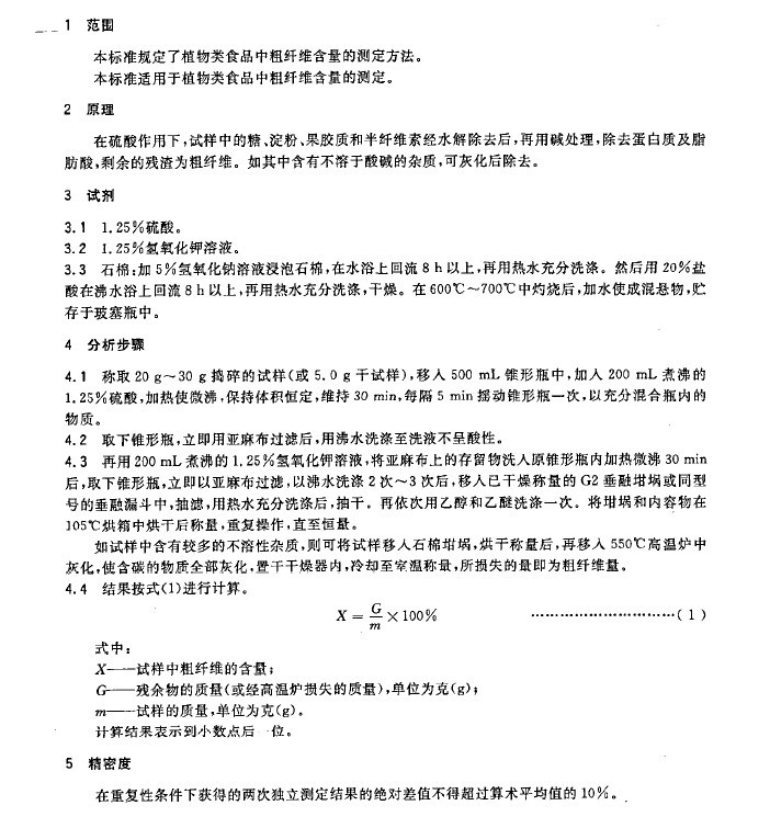 植物類食品中粗纖維測定 GBT5009.10-2003