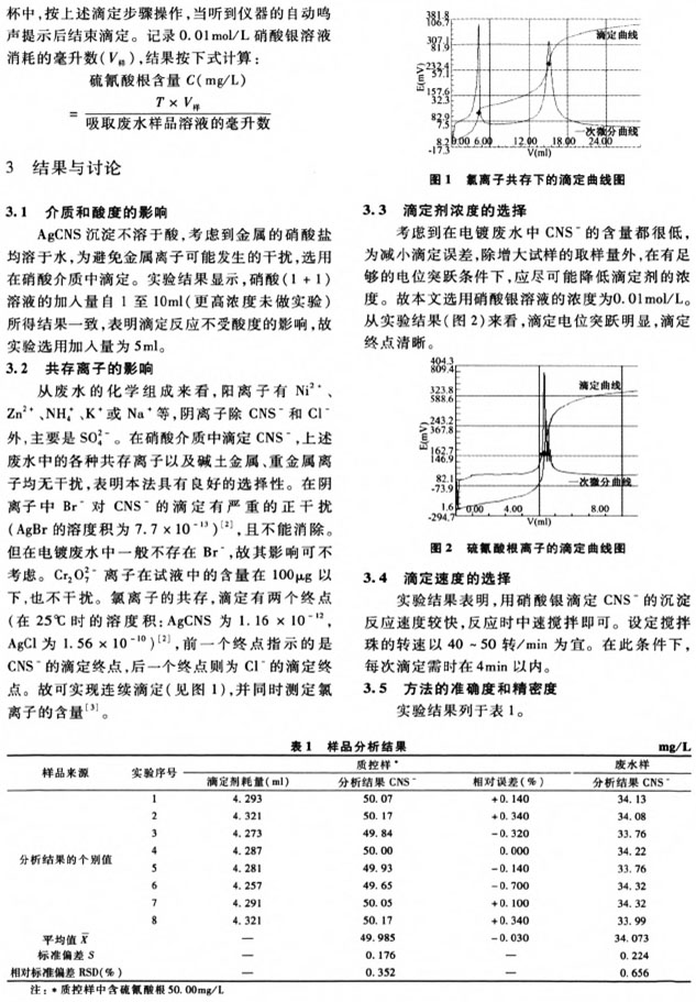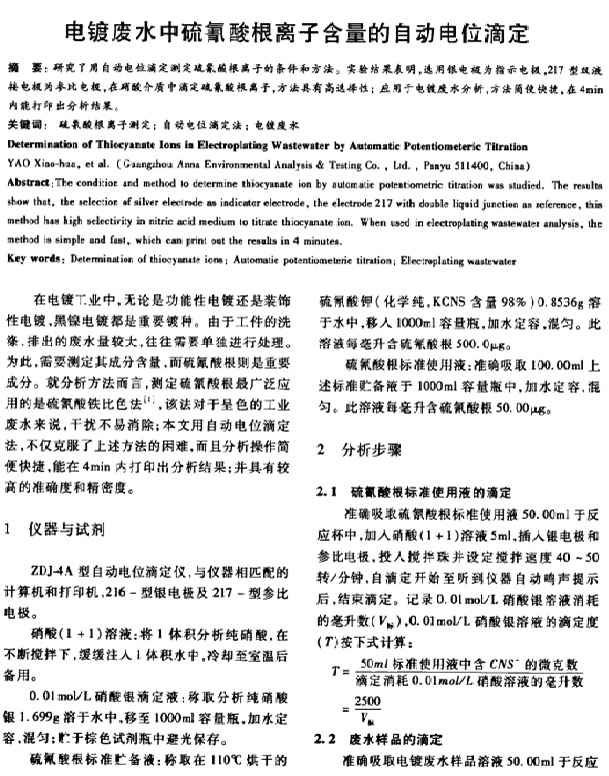 電鍍廢水中硫氰酸根離子含量的自動電位滴定