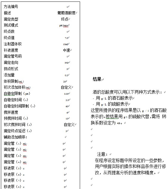 酒的總酸度是可滴定酸度的總和,使用標(biāo)準(zhǔn)濃度的NaOH溶液滴定pH至7.0,結(jié)果用 g / l的酒石酸(或硫酸)表示。由于CO2會影響實(shí)驗的測定,樣本測試前必須先前在超聲浴中或攪拌下真空脫氣。
