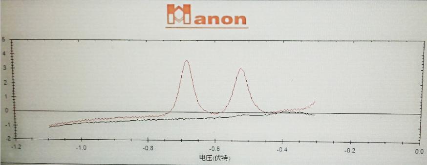 確保樣品杯已經(jīng)連接至探頭上 ,在可用的測試方法下拉菜單中選擇Cd,Pb, 然后點(diǎn)擊電極預(yù)處理,該步驟運(yùn)行大概兩分鐘。該步驟的目的主要是混勻樣品中的固體試劑和獲得一個穩(wěn)定的電極表面。 然后選擇標(biāo)準(zhǔn)添加法,等待大約兩分鐘軟件提示加入20ppb 的標(biāo)準(zhǔn)溶液,使用微量移液器加入280微升的M1標(biāo)準(zhǔn)溶液,點(diǎn)擊繼續(xù)。然后儀器再次開始測試,大概兩分鐘后,即可獲得檢測結(jié)果。