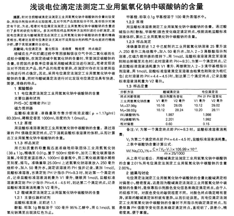 淺談電位滴定法測(cè)定工業(yè)用氫氧化鈉中碳酸鈉的含量