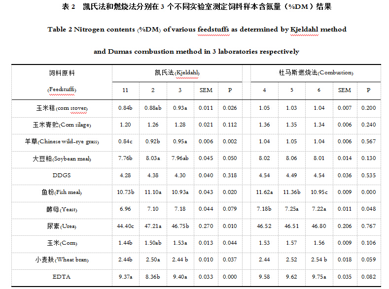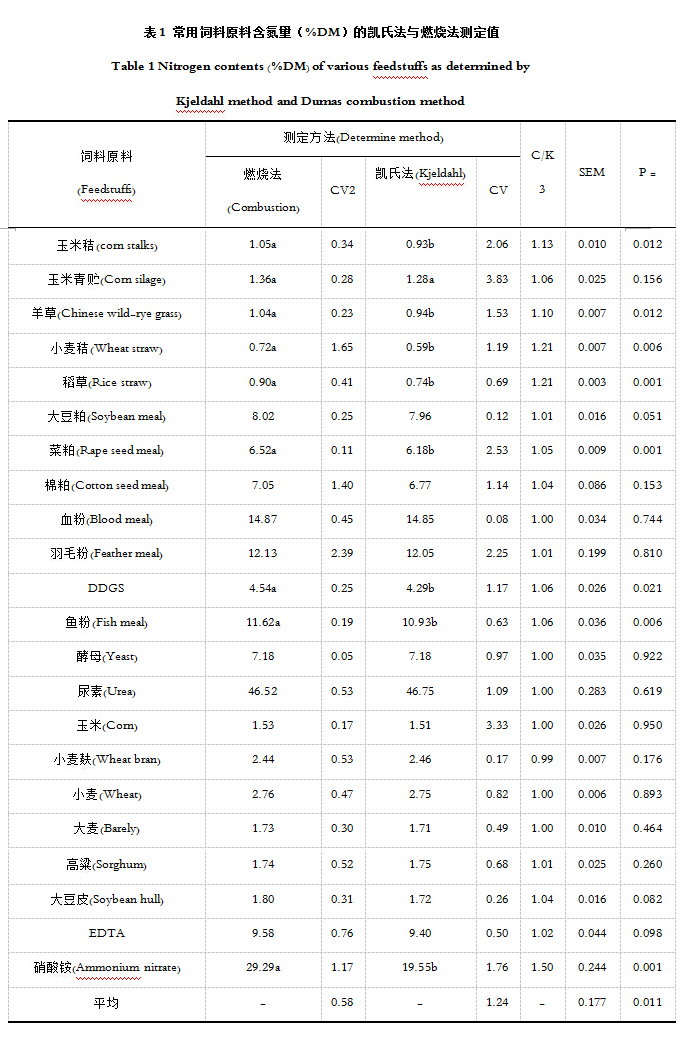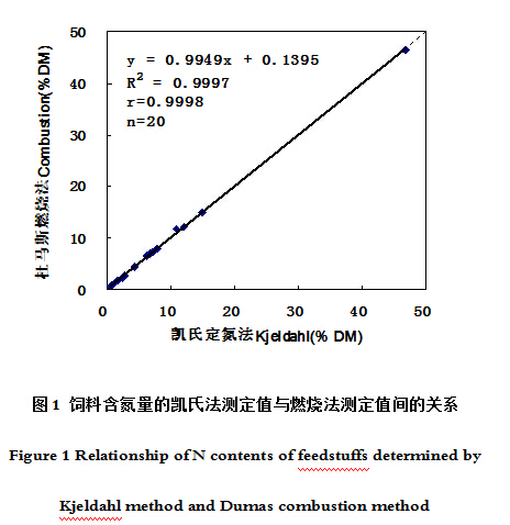 杜馬斯燃燒法與凱氏法測定飼料含氮量的比較