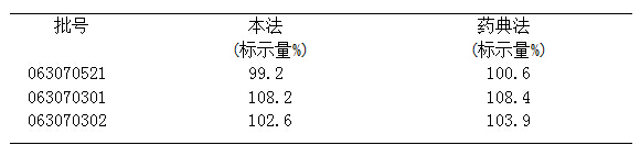 取3批阿奇霉素干混懸劑,按“3”項(xiàng)下配制對(duì)照品溶液和樣品溶液,在上述色譜條件下分別進(jìn)樣20μL,按外標(biāo)法計(jì)算含量,結(jié)果與抗生素微生物法比較見(jiàn)下表