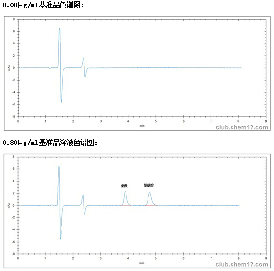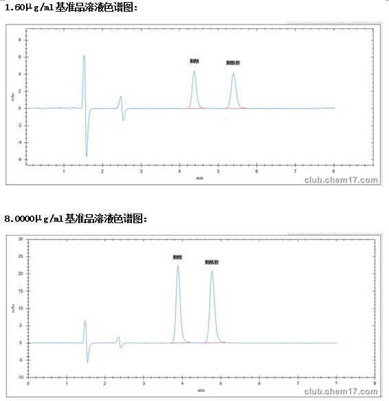 容量瓶中,用水定容。該基準(zhǔn)系列濃度分別為0.00μg/mL、0.80μg/mL、1.60μg/mL、4.00μg/mL、8.00μg/mL。有了保證基準(zhǔn)品溶液蛻變,盡量臨用前配。