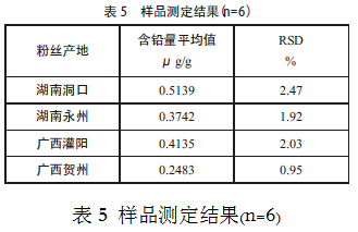 98.05%,RSD=1.68%(n=6)。該法簡單、準(zhǔn)確,可作為檢測紅薯粉絲中鉛含量的方法,為食品安全提供可靠的技術(shù)保障。