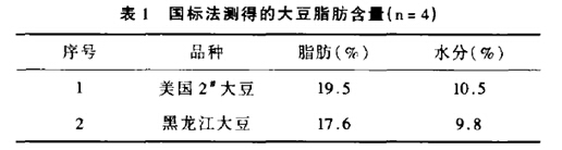 1.5.1 按國標法對兩種大豆樣品進行脂肪測定,并測定其水分含量。
