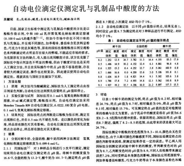 自動電位滴定儀測定乳與乳制品中酸度的方法