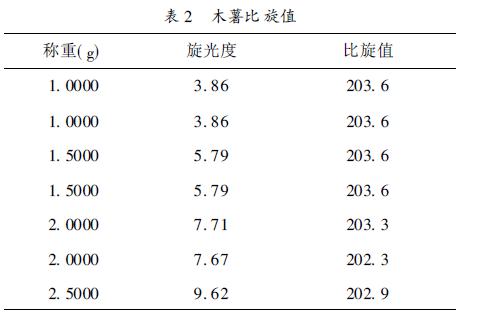 得出木薯淀粉的比旋值。表2是幾組平行實驗數據: