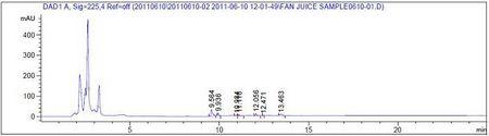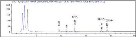 圖4 含塑化劑的A品牌果汁樣品HPLC圖譜