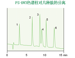 硅膠色譜柱在中度pH與溫度的操作環(huán)境下表現良好,但有時也會需要在比常規(guī)pH、溫度高或在高濃度的離液劑(比如鹽酸胍)中操作的需要。聚苯乙烯- 二乙烯基苯等機械強度高的合成聚合基質在苛刻的條件下比較穩(wěn)定,可以作為實用的硅膠替代品。圖12表示的是用合成聚苯乙烯- 二乙烯基苯色譜柱對幾種多肽的分離。其性能和硅膠色譜柱相似,這樣就使在相對苛刻的條件下用合成聚合基質進行多肽分離成為可能。