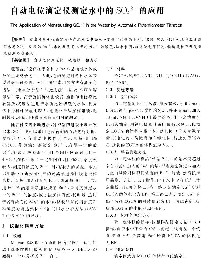 自動(dòng)電位滴定儀測(cè)定水中的SO𔔪⁻的應(yīng)用