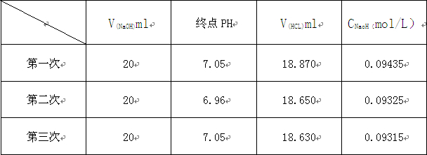 四、實(shí)驗(yàn)數(shù)據(jù)處理 (CHCl =0.1mol/L ,VNaOH= 20mL)