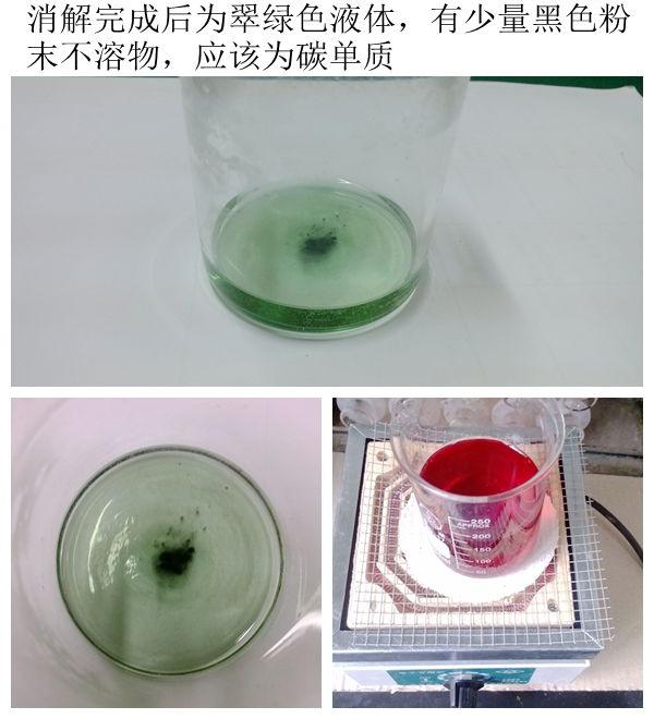 消解完成后,待溫度降至80℃后,轉(zhuǎn)入燒杯中,加150mL蒸餾水,加入10mL硝酸銀溶液,10mL硫酸錳溶液、10mL過硫酸銨溶液,加熱溶液呈現(xiàn)紅色,繼續(xù)煮沸,加入10mL硫化鈉溶液,煮沸濃縮至100mL左右,轉(zhuǎn)移至滴定杯中。