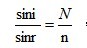 當(dāng)光從折光率為n的被測(cè)物質(zhì)進(jìn)入折光率為N的棱鏡時(shí),入射角為i,折射角為r,則: