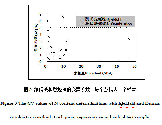 CV2表示變異系數(shù)。C/K3表示燃燒法與凱氏法的比值。