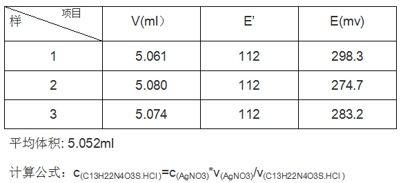 測(cè)定方法:取1粒膠囊,準(zhǔn)確稱取其內(nèi)容物質(zhì)量,溶于50ml容量瓶中,超聲震蕩放置5分鐘后,濾掉不溶物。用移液管準(zhǔn)確移取5ml濾液于滴定杯中,加入95ml去離子水,以雙鹽橋飽和甘汞電極為參比電極,以處理過的銀電極為指示電極,以AgNO3標(biāo)準(zhǔn)溶液為滴定劑,在電磁攪拌下進(jìn)行電位滴定。