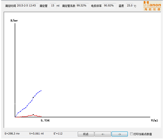 l 樣品量5ml, 終點(diǎn)體積:5.080ml。