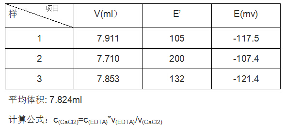 ·滴定劑:c(EDTA)=0.0605mol/L, 滴定劑的濃度用基準(zhǔn)物質(zhì)CaCl2標(biāo)定。