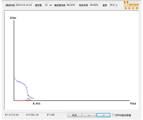 ·樣品量:5ml, 終點(diǎn)體積:7.911ml。